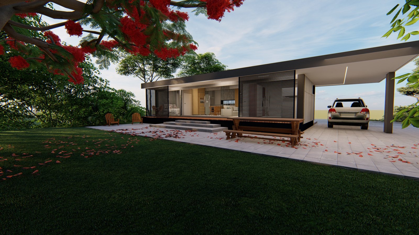 Assinada pela arquiteta Michelly Brito, a Casa Container Flamboyant alia modernidade, integração com a natureza e um uso inteligente dos espaços. Com linhas contemporâneas e soluções funcionais, o projeto entrega conforto, estilo e sustentabilidade em uma estrutura compacta, versátil e cheia de personalidade.