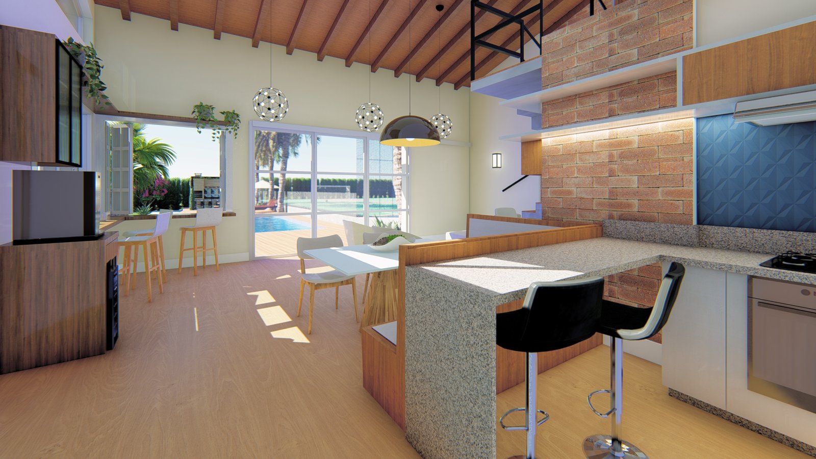 Com 150m² de área bem distribuída, a Residência Mara foi projetada para oferecer conforto, lazer e funcionalidade em cada ambiente. Assinada pela arquiteta Michelly Brito, a casa conta com espaços integrados, área gourmet completa, home cinema, acabamentos sofisticados e um toque moderno em cada detalhe. Um projeto pensado para viver bem todos os dias.
