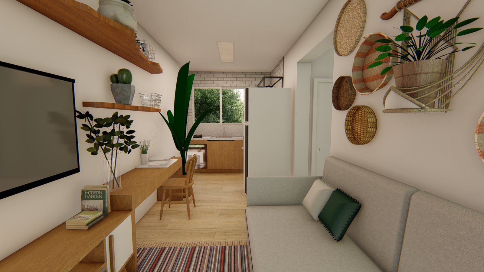 Este projeto, assinado pela arquiteta Michelly Brito, foi desenvolvido com foco em acessibilidade e otimização de espaço, oferecendo uma solução inteligente e funcional para famílias que se enquadram no programa Minha Casa, Minha Vida — tudo isso sem abrir mão do conforto e da qualidade.