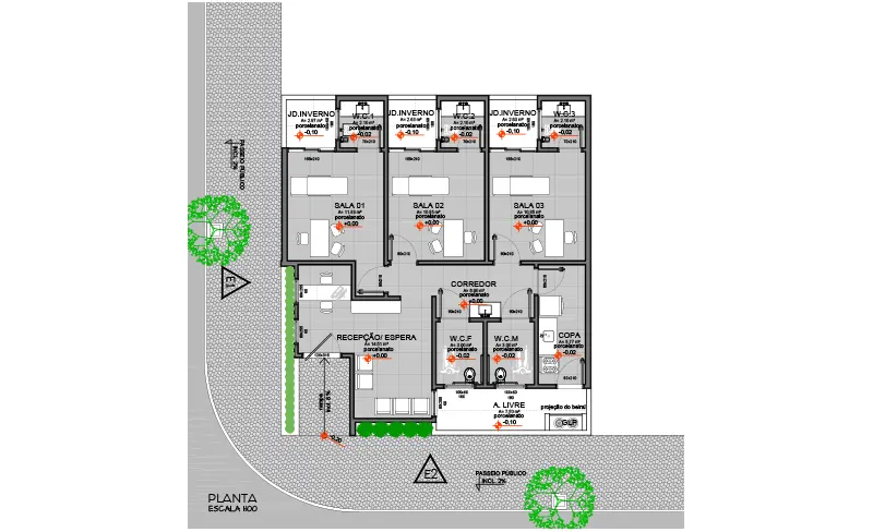 Este projeto, assinado pela arquiteta Patrícia Rigobello, foi desenvolvido com foco na funcionalidade e elegância para clínicas e consultórios, unindo uma fachada imponente ao layout interno eficiente. Cada detalhe foi pensado para proporcionar conforto, acessibilidade e um ambiente acolhedor tanto para os profissionais quanto para os pacientes.